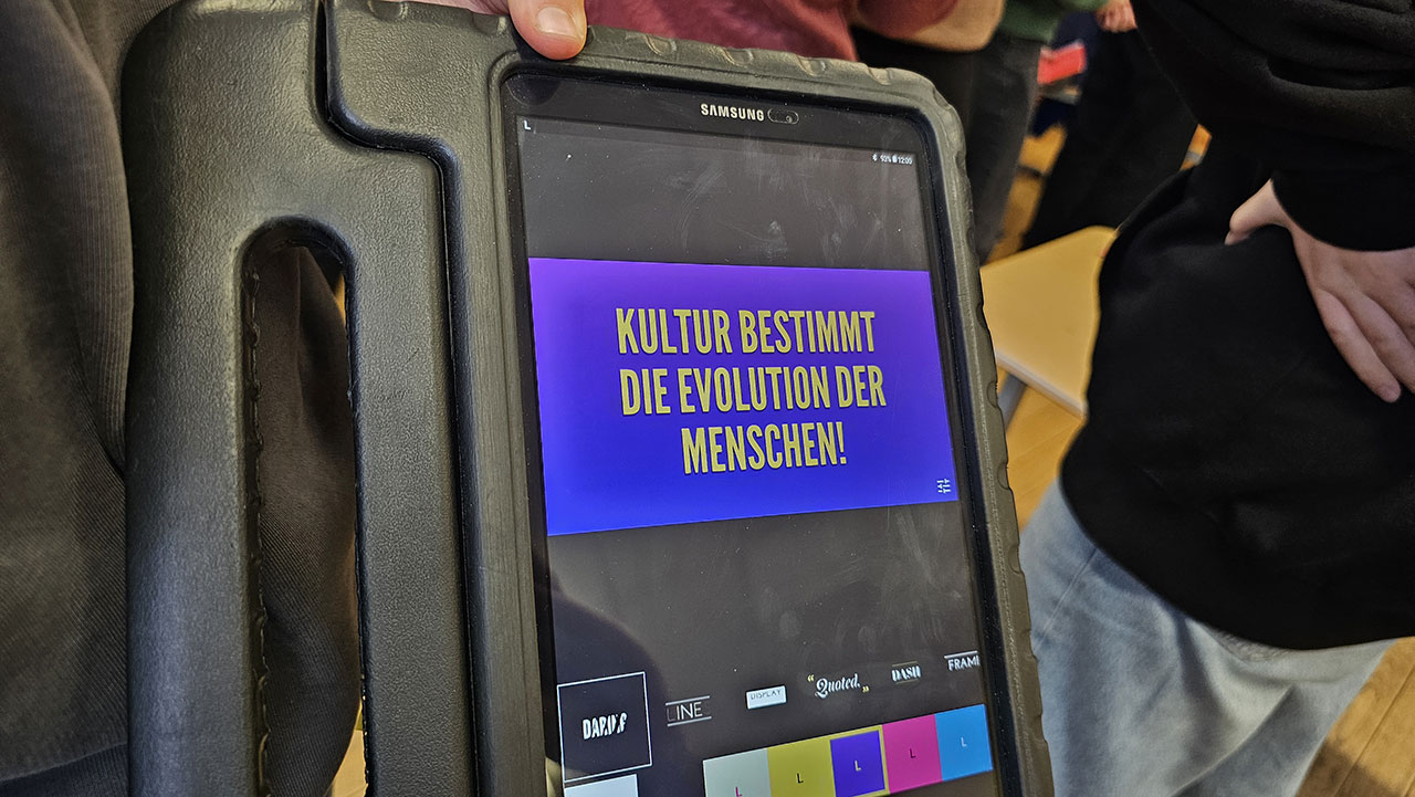 Berlin ist eine Stadt, die durch ihre kulturelle Vielfalt geprägt ist und Menschen aus der ganzen Welt mit ihren verschiedenen Bräuchen, Traditionen und Perspektiven anzieht. Was uns in dieser Vielfalt verbindet, ist die gemeinsame Wertschätzung für Toleranz, Respekt und Neugier gegenüber anderen Kulturen. Diese Offenheit und der Austausch fördern ein Gefühl der Zusammengehörigkeit und machen Berlin zu einem lebendigen Ort, an dem kulturelle Vielfalt als Bereicherung gesehen wird. Durch den Austausch mit anderen Kulturen erweitern wir unseren Horizont und gewinnen Verständnis für die Lebensrealitäten anderer Menschen.Zu Beginn des Projektes haben wir kurze Statements zum Thema erstellt und mit der App „Animated Text“ (Android) kurze Videoclips dazu produziert.